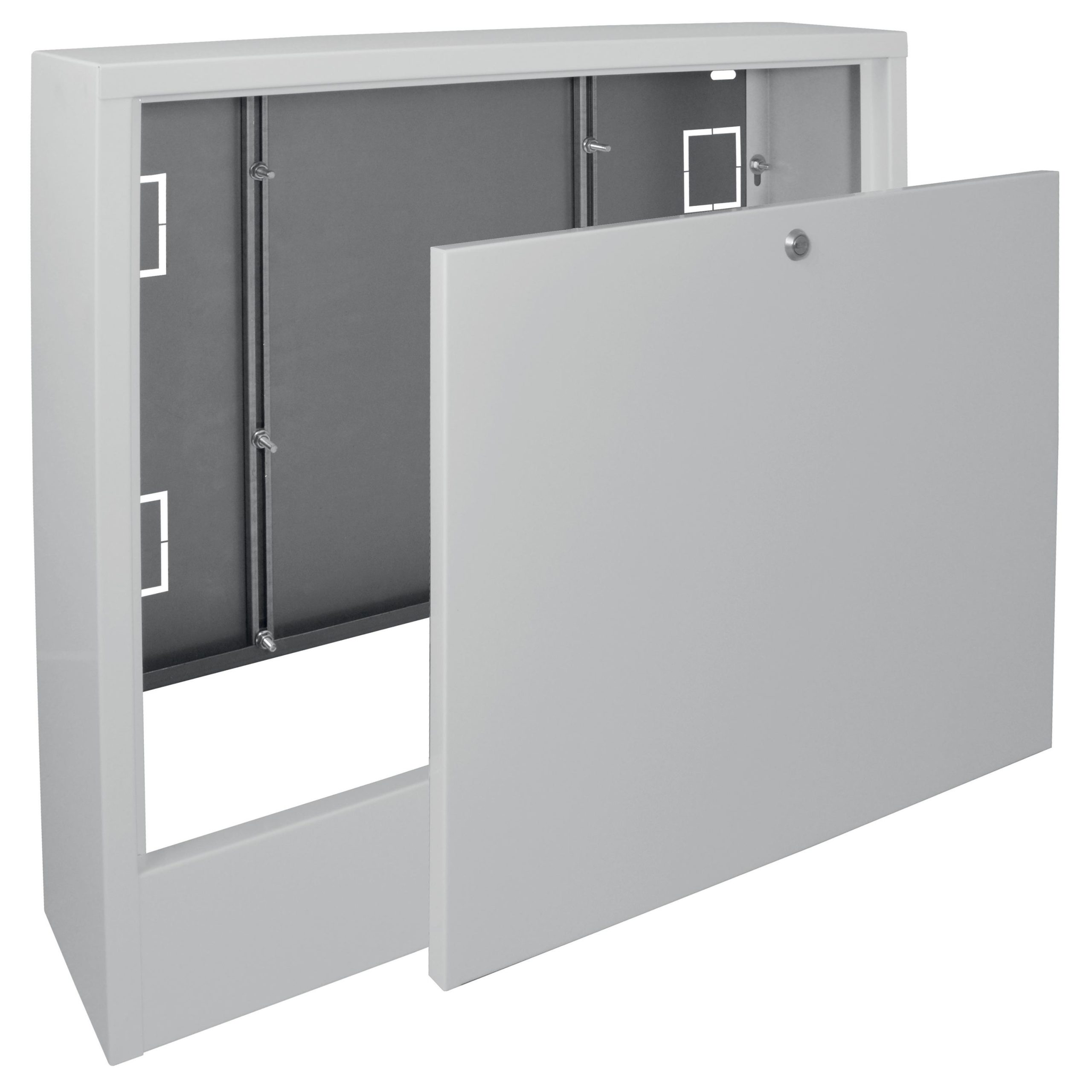Oferujemy szafki przeznaczone do montażu rozdzielaczy wykorzystywanych w instalacjach grzewczych. Szafki te pełnią nie tylko funkcję praktyczną, ale również ochronną i estetyczną, dbając o schludny wygląd wnętrza.